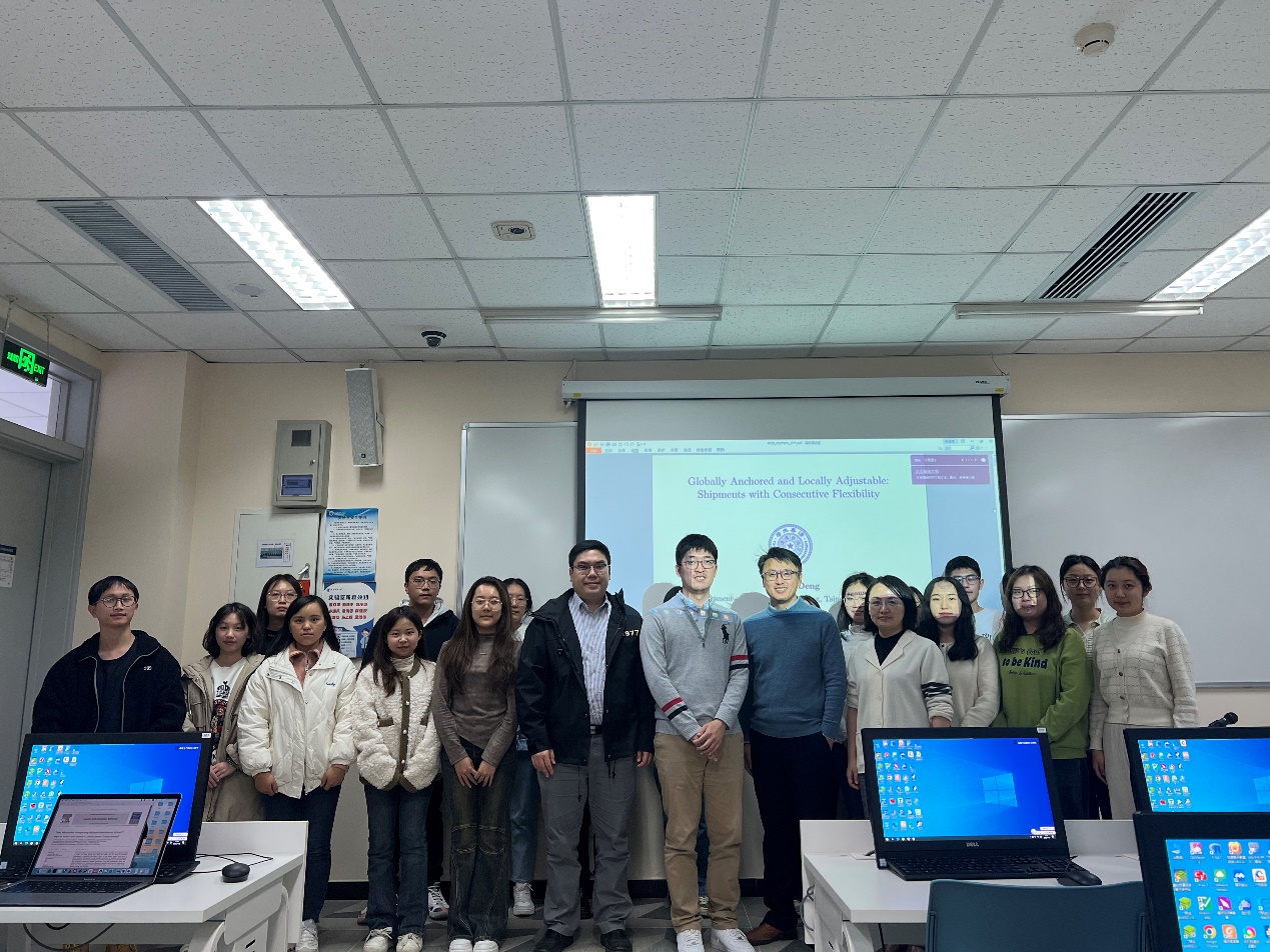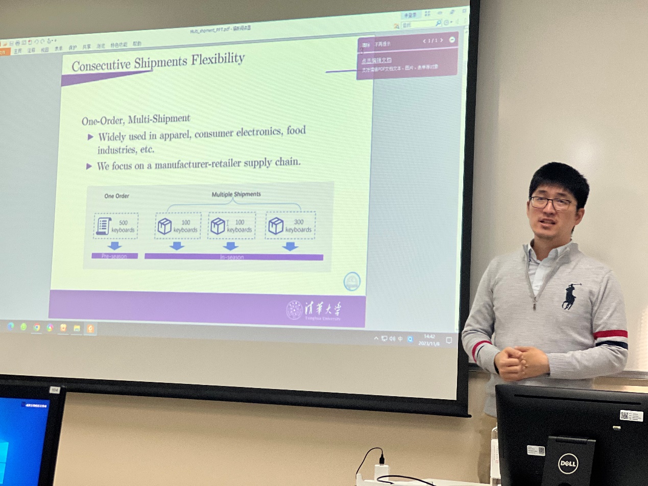 2023年11月8日下午2时,于沙河4号楼106,清华大学副教授、博士生导师邓天虎应邀在建设经济与管理系列论坛上作《Globally Anchored and Locally Adjustable: Shipments with Consecutive Flexibility》主题报告。报告由建设经济与管理系吴国滨老师主持,beat365官网副院长李玉龙教授、建设经济与管理系主任杨帆副教授、管理科学系教工党支部书记陈俊霖副教授、工程与项目管理和管理科学23级研究生参与了本次主题报告。