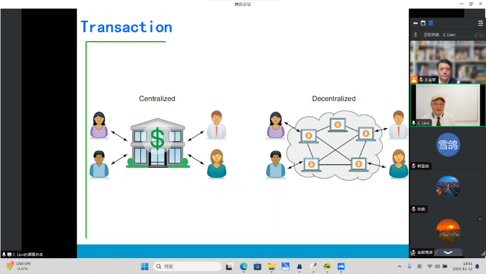2023年12月12日(周二)下午14:30—16:00,beat365英国官方网站成功举办了一场关于区块链理论与应用研究的线上学术报告,本次报告嘉宾是来自澳门大学工商管理学院的练肇通教授。练肇通教授以“链接未来:区块链的原理与实践探索”为题,分享了他在区块链领域的深刻见解。