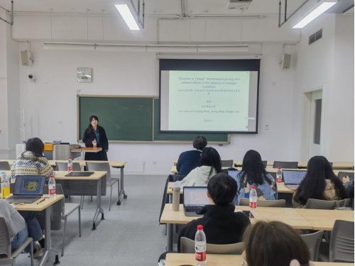 报告结束后,张钰副教授与在场师生就讲座内容展开充分交流,并对同学的提问进行了详细的解答。本次讲座内容丰富,研究新颖,引发了与会者对网络效应与跨期定价领域研究的深入思考,进一步活跃了学院的学术氛围。最后讲座在热烈的掌声中圆满结束。