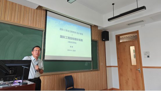 2024年6月30日晚上,北京国际度假区有限公司成本及合约副总监张辉先生应邀在我校学院南路校区主教207教室作《国际工程投标报价实务》专题讲座,从我国承包商的视角,系统总结和介绍企业在国际工程投标报价领域的实践经验。讲座由建设经济与管理系高然老师主持,MEM 2023级学员参加本次讲座。