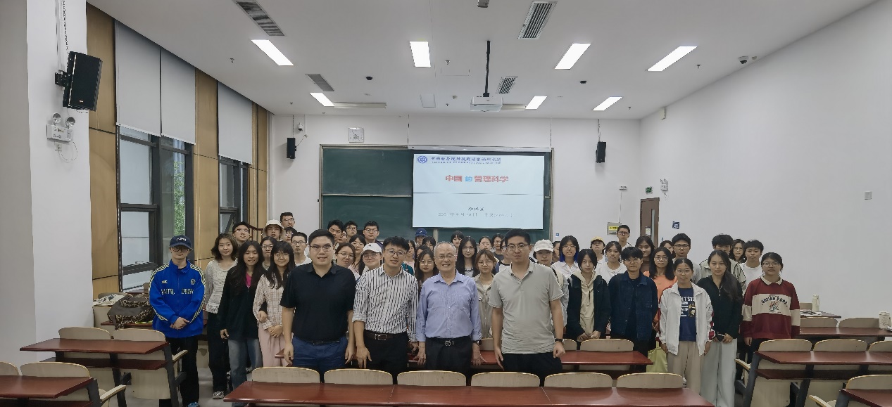 徐老师在报告中回顾了中国管理科学的发展历史,着重介绍了以华罗庚先生为代表的老一辈科学家在推广统筹法、优选法等管理科学与工程经典理论方法和技术工具所做的努力,并用生动的现场实验展现了管理科学理论指导工程实践的实施路径。他还从基金委管理科学部的学科划分阐述了中国的管理科学与国外管理科学的内涵差异,介绍了其带领的团队如何通过构建具有中国特色的学术期刊评价体系来引领中国的管理学科发展,并以工程管理领域学术发展为例阐述了中国管理学科从落后到超越再到领先的奋斗历程。最后,他还以盛昭瀚教授带领团队为港珠澳大桥建设提供支撑并得到崇高致敬为引,用当前多位顶尖管理科学专家的成果案例来勉励同学们要做顶天立地的管理学研究,既要面向世界一流发表高水平期刊论文,又要面向中国管理实践解决行业真问题。