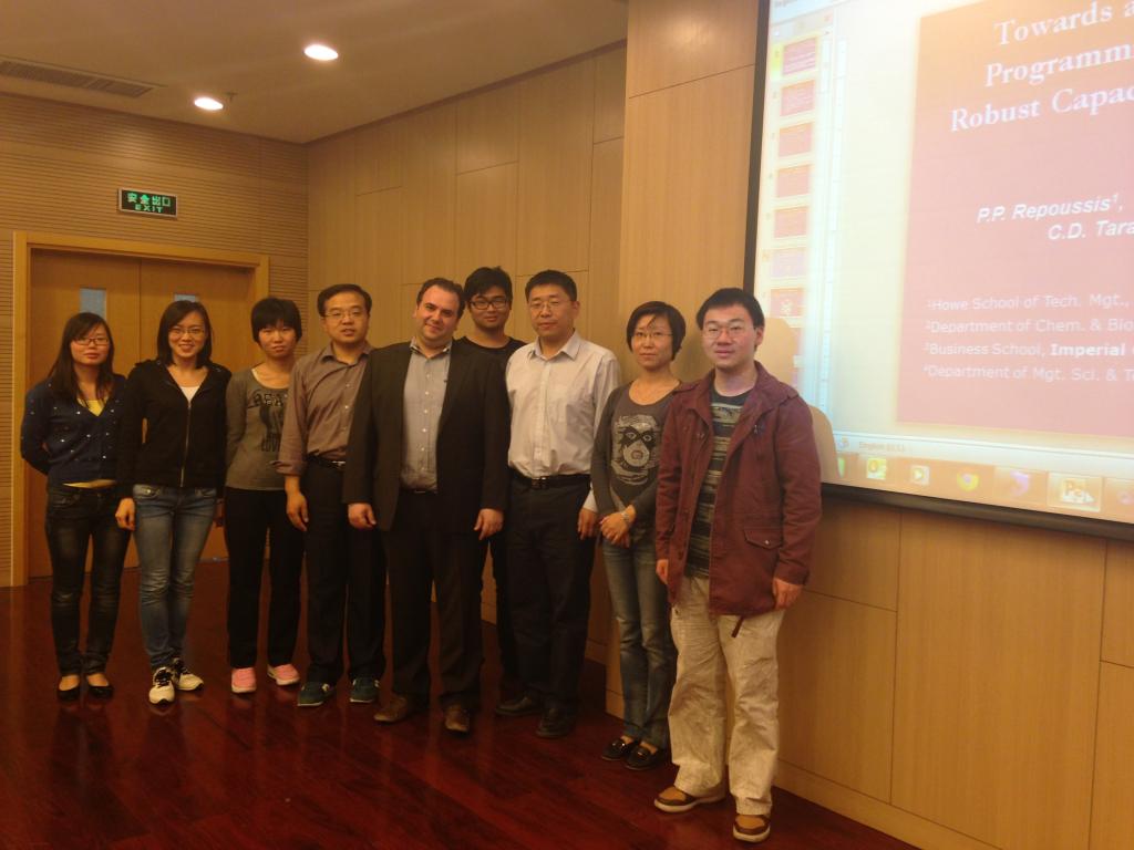 Panagiotis P. Repoussis博士在物流和交通管理领域具有很好的研究积累,报告中他基于现在从事的研究,介绍了在不确定性需求下采用鲁棒优化方法解决有容量约束的车辆路径选择问题,以及相应的最优方案。大家针对讲座中的问题与Repoussis博士进行了交流, 并希望以此为基础在未来开展研究方面的合作。