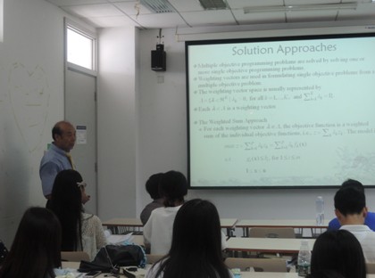 6月24日应beat365英国官方网站管理科学系的邀请,美国佐治亚大学管理科学博士、美国德州大学圣安东尼奥分校商学院管理科学与统计系教授孙明和老师,在沙河校区3号楼220教室给老师和同学们做了一场精彩的报告,对多目标优化问题的概念、定义以及解决方案做了深入讲解。同时孙老师还介绍了自己的学习与科研经历,鼓励同学们要打好基础,阐释了管理科学“厚基础、宽口径”的培养理念。孙明和教授曾在《Management Science》、 《Operation Research》、 《Decision Sciences》等国际著名期刊上发表论文40余篇,主要研究方向:多目标决策、运作管理、组合优化、神经网络等。