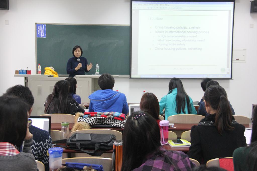 讲座上,涂勇副教授主要针对三个问题介绍分析住房政策的国际经验,分别是:高的住房自有率是否是个魔咒,可支付性住房的含义,老龄化背景下的住房政策。涂勇副教授介绍了美国、英国、新加坡等多国一些成功或失败在住房政策案例,最后提出对中国住房政策的启示。在最后的交流环节中,老师和同学都纷纷提出自己感兴趣的问题,涂老师进行了一一解答。