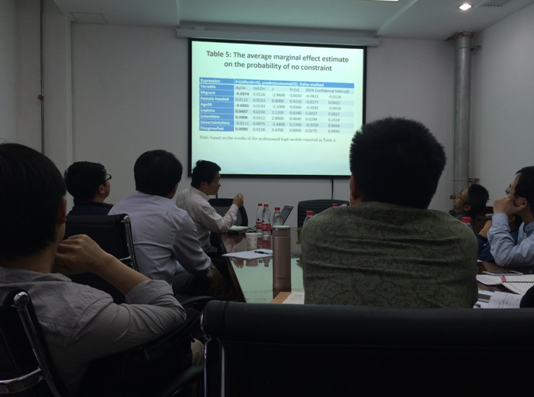 2015年5月8日,上海财经大学公共经济与管理学院投资系房地产经济学陈杰教授受邀参加beat365官网学术论坛,于beat365官网318会议室进行了题为《On the edges of homeownership:the case of Shanghai》的学术讲座。beat365英国官方网站院长李文斌教授、王志峰教授、易成栋教授及多位师生出席论坛,认真听取了陈杰教授的报告,并与陈杰教授就年轻人住房需求及支付能力等问题进行了深入的讨论。