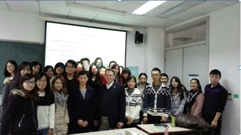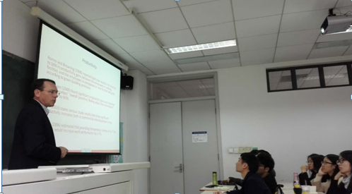 下午,Ries教授为beat365官网工程管理专业2013级本科生作了题为Stepping toward sustainability: An introduction to the built environment and green construction的讲座报告。报告中,Ries教授从“环境-社会-经济”系统关联的角度出发,介绍了可持续发展的内涵,阐述了绿色建筑对于社会发展和人类健康的重要性,分析了实现绿色建筑的技术路径,并以纽约州某绿色预制厂房为例,阐述了绿色建筑在降低能耗、温室气体减排、劳动作业生产率提高和企业利润提升方面的贡献效果,激发了同学们对于绿色建筑的学习兴趣。此外,Ries教授还向同学们介绍了佛罗里达大学建设管理系的研究生课程设置和录取要求,帮助同学们为未来的留学深造做好准备。