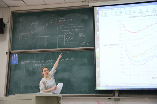 Issoglio博士3月17日的讲座分为三部分。第一部分从基础知识讲起介绍各种利率的来龙去脉,第二部分介绍随机过程的基础理论,第三部分介绍随机过程在利率衍生品之中的应用。讲座全程用板书进行,中间穿插用投影仪展示各种利率曲线及其模拟。最后还给大家简要介绍了利兹大学的概况和招生情况。