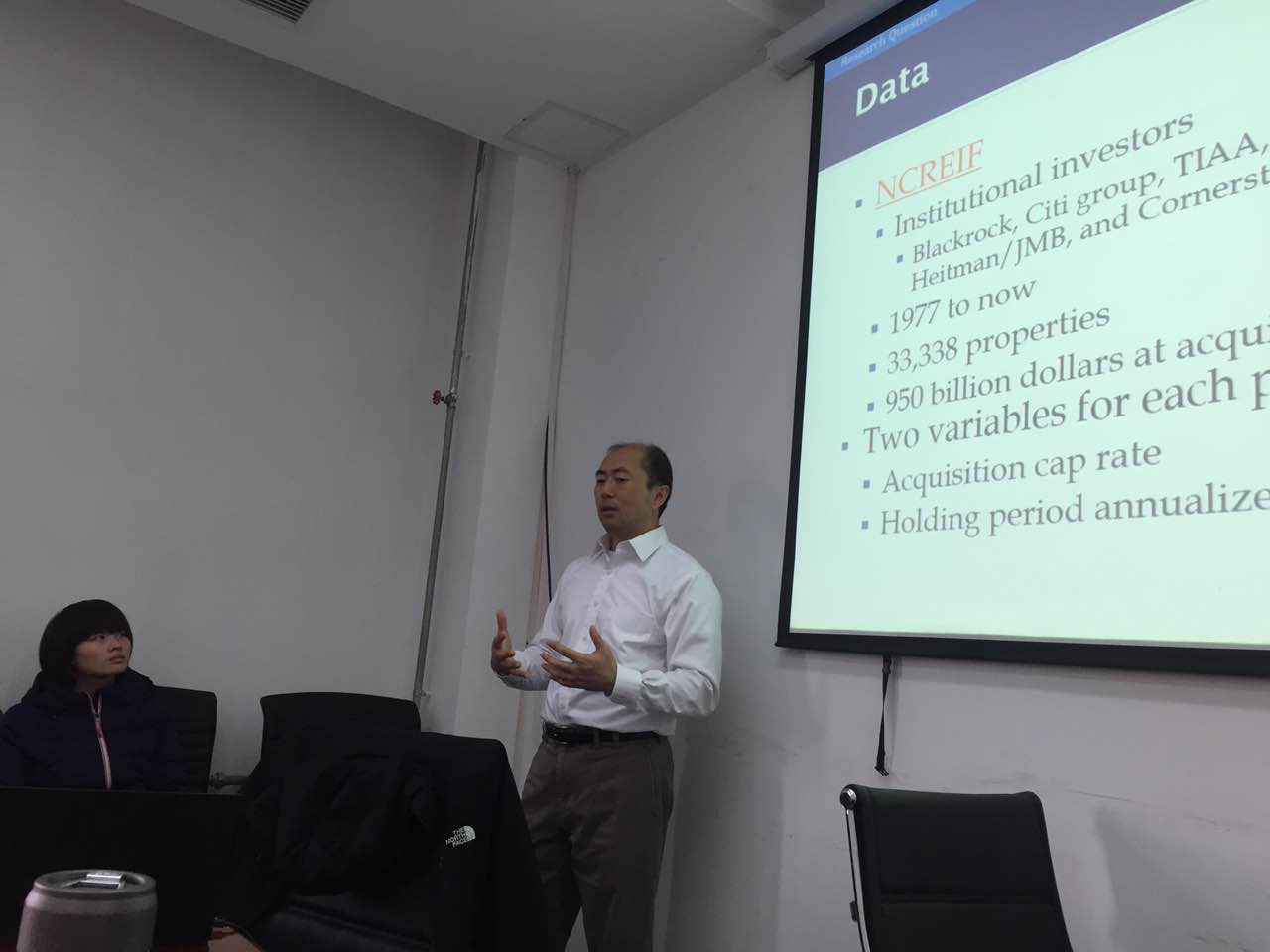 2016年11月15日,美国宾夕法尼亚大学斯米尔商学院彭亮教授应邀访问我校,在沙河校区学院4号楼320会议室作了一场生动的学术报告。报告的主题是Do Discount Rates Predict Returns? Evidence from Private Commercial Real Estate,院长李文斌,房地产系相关专业老师,以及房地产专业16级研究生参加了该次报告。