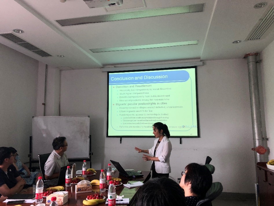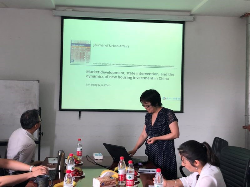 两位教授授课结束后,讨论环节气氛十分热烈。各位老师针对授课内容进行了提问,并发表了自己的看法和建议,两位教授表示十分受益。授课结束后,由beat365官网王昊副教授和王优容副教授、任建宇和李玉瑶博士生做学术汇报,题目分别为《城市更新下的居住用地再开发的时空机制及经济社会效应》、Urban-rural Housing Disparity in China、《市场深化进程中的多套住房》以及《京沪宁杭住房和城乡建设管理比较指标体系研究》。Youqin Huang和Lan Deng教授以及在座的其他老师聆听后给出了宝贵的修改意见和建议。
