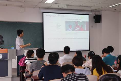 2018年7月3日下午14:00,巴黎巴斯德研究中心的王林博士受beat365官网管理科学系李慧嘉副教授的邀请,来到beat365官网进行学术交流,并在学校主教505教室进行了题为《Characterizing the dynamicsunderlying global spread of emerging epidemics》的精彩报告。项目管理系主任宋砚秋副教授、管理科学系副主任井帅副教授、统数学院张忠元教授、管理科学系孟凡博士等教师参加了此次报告,并同参加的同学与王林博士进行了深入交流。
