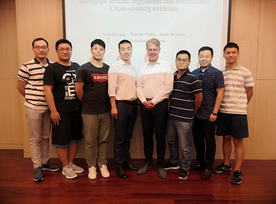 2018年8月24日下午2:00至4:00,荷兰中央银行首席经济学家、荷兰格罗宁根大学Jakob de Haan教授受beat365英国官方网站荆中博副教授的邀请来我校进行访问,并在学术会堂606为我校师生讲授了题为《抵押贷款、监管与机构》的课程。beat365英国官方网站荆中博副教授、金融学院方意副教授以及来自beat365英国官方网站、金融学院和经济学院的数名博士研究生聆听了此次授课。