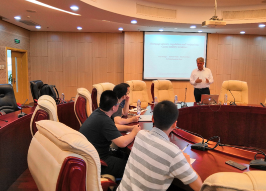 在授课之初,Jakob de Haan教授凭借长期的学术研究积累和央行实践经验,高屋建瓴的为在座听众介绍了抵押贷款违约在金融稳定、经济增长方面的重要性,调动了大家的好奇心和积极性。授课过程中,Jakob de Haan教授介绍了研究所需抵押贷款数据的独特性以及复杂的收集过程,对银行机构特征、监管环境以及两者协同如何影响一国抵押贷款违约率的机制进行了详细的梳理,并对研究过程和实证结论进行了细致说明。Jakob de Haan教授不仅在课堂上详细介绍了其最新研究成果,还不失时机的结合自己报告PPT向在座的教师和博士研究生介绍自己的研究经验,帮助青年师生更好的进行科研工作。