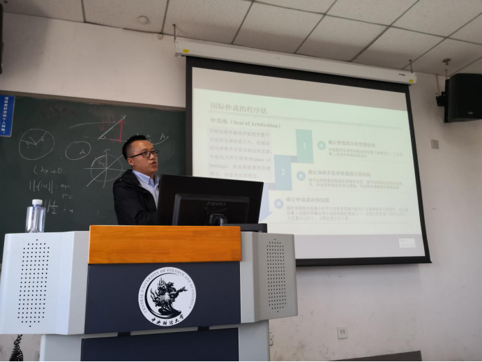 杨晓鹏先生首先给同学们提出了几个问题,同学们被这些新奇的问题激发了兴趣,认真地听起了讲座。之后他从国际工程法律适用体系简介、国际工程项目适用法律、国际工程合同管辖法律、国际工程争议解决适用法律四个方面为同学们详细地介绍了国际工程合同的相关知识。