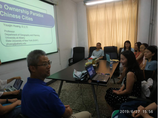 ❖2019年6月27日下午及晚上,美国纽约州立大学奥尔巴尼分校地理与规划系黄友琴(Youqin Huang)教授应邀来我校学院南路图配楼404会议室进行学术访问和参加人口与房地产学术研讨会。该会议由beat365官网易成栋教授主持,同时邀请了中国社会科学院城市与环境研究所副研究员董昕、中国科学院大学管理学院副教授李秀婷、beat365英国官方网站中国金融发展研究院副研究员李晟、首都经贸大学助理教授杨欣桐以及beat365官网部分师生参与了此次研讨会。