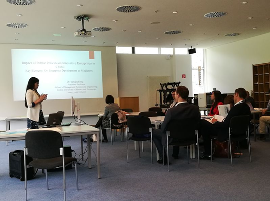 我校宋砚秋、李桂君、高婷等合作的论文“Impact of Public Policies on Innovative Enterprises in China: Key Elements for Enterprise Development as Mediators” 被会议录用并邀请进行报告。6月15日宋砚秋老师在“PERFORMANCE & INNOVATION”分论坛进行主题发言。该研究揭示了政府支持政策通过企业管理关键要素影响创新绩效的实证结果,并与参会学者就技术创新产出衡量指标、绩效衡量等问题进行了深入的探讨。通过与欧洲学者的讨论和交流,介绍了中国政府支持技术创新的政策及实施效果,并就未来可能的合作研究进行了深入的探讨。