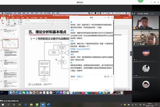 最后,与会师生从外部利益相关者理论、中国传统制造业数字化转型现状和展望、案例研究经验等角度和吴武清教授开展了充分热烈的讨论,极大程度的引起了与会师生开展企业案例研究,将研究扎根在中国大地的热情和抱负。