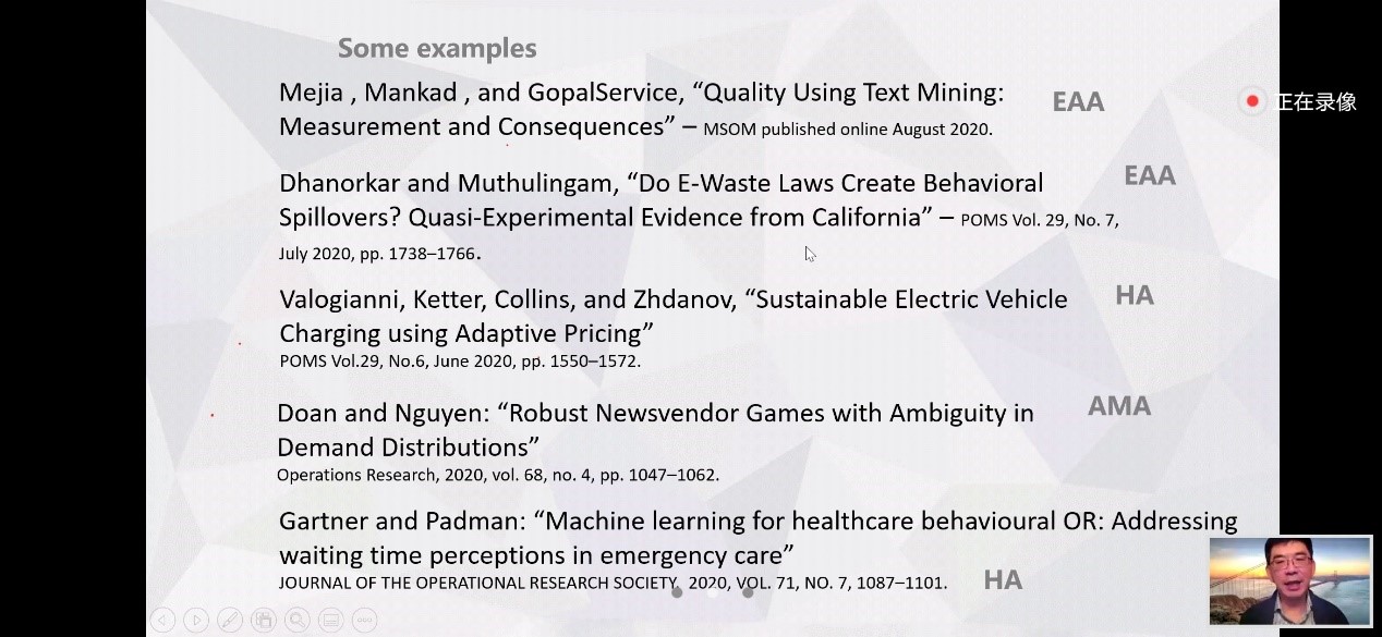 张喆教授以JORS为例从运筹学(OR)和管理科学(MS)的历史讲起,详细回顾了学科的发展和若干顶级期刊的由来,以及它们的现状和对历史的展望。张教授对各类期刊的投稿要求和侧重点也进行了较详尽的阐述,为青年学者选择与自己研究方向和领域相近的顶级期刊进行投稿、提高命中率提供了非常好的指导。