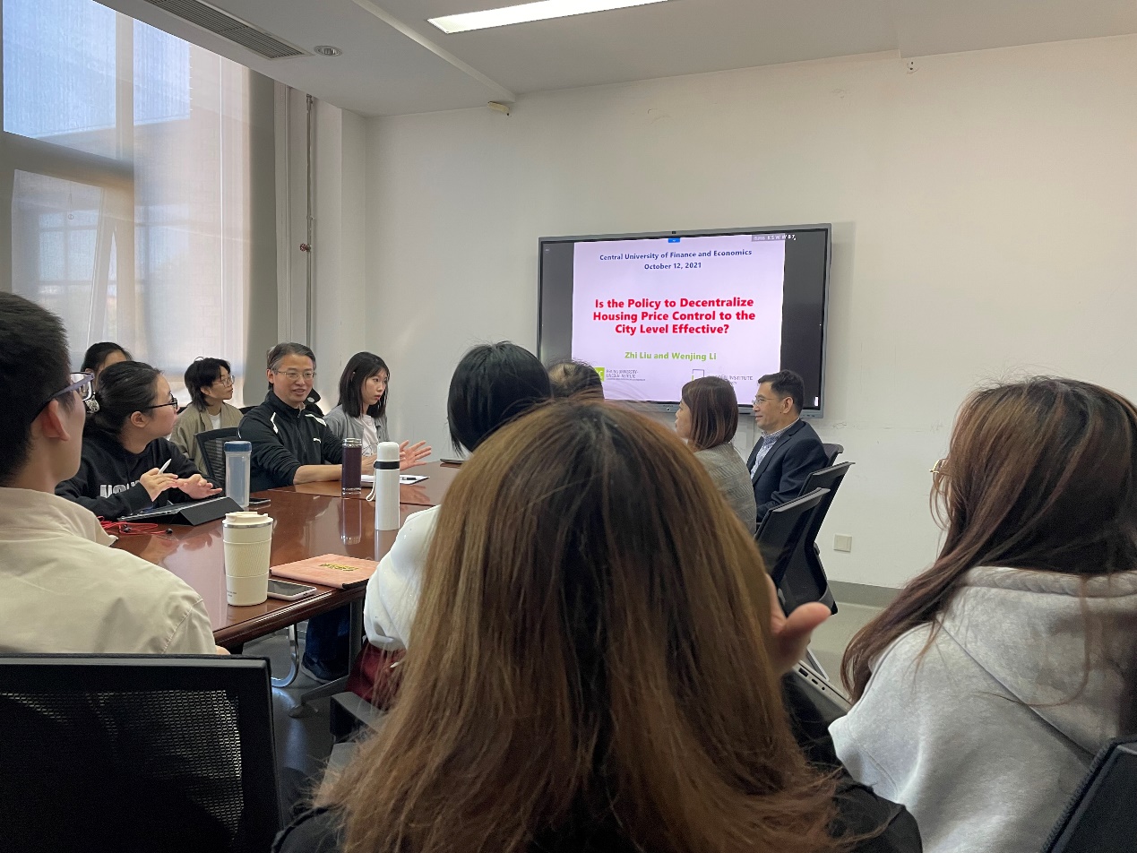 此次讲座由易成栋教授作为主持人,城市与房地产管理系主任郑亮副教授作为讨论人,一些校内老师、我校投资学专业博士研究生、房地产经济与管理专业硕士研究生和部分其他专业的学生共同参与。