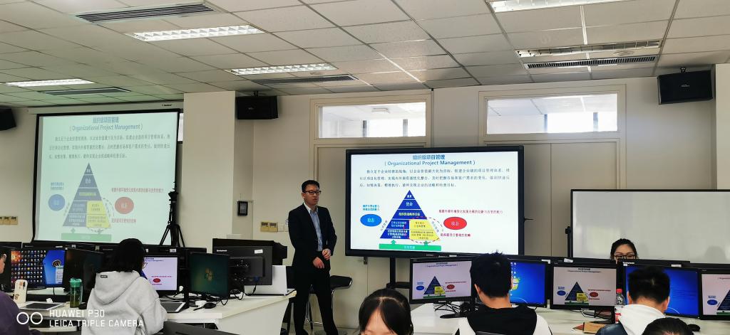 首先,王爱阳通过讲解某央企发展历程、发展模式以及组织架构的变革,引出了项目管理办公室(PMO)在大型企业管理和运营中的重要性。他指出PMO应该是组织级项目管理体系建设和运营的核心部门。并运用多个案例介绍了如何以PMO为核心,建设组织级项目管理体系,提高企业战略落地能力以及市场竞争力。紧接着,他通过分析当前企业项目管理中至少15项的痛点问题,指出PMO在企业中产生的合适时机与生存条件。随后,王爱阳引用详实案例,具体展示了PMO在不同类型组织中从立足到成熟的五阶段演进过程。最后,他结合自身经历,介绍了项目经理成长路径,以及优秀项目经理应具备的能力素质,对同学们的未来职业生涯规划有重要的参考意义。讲座结束前,高婷副教授再次向主讲嘉宾与参会人员表示了感谢。