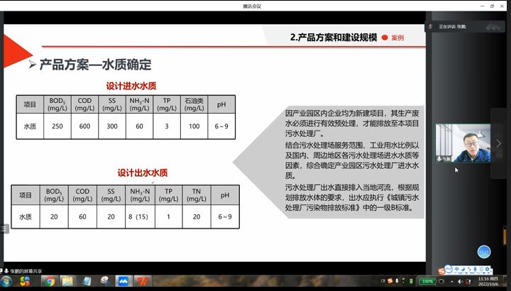 在研讨会上,张鹏首先介绍了项目建设方案评估的主要内容以及建设方案比选的常用方法。其次,他以一个大型污水处理厂及配套管网工程项目为案例,从水质分析、污水处理规模确定、工艺方案选择以及厂址比选等方面,详细阐述了污水处理项目建设方案比选的全过程。通过案例讲解,为大家深入浅出地阐明了建设项目方案比选应根据市场需求,结合项目实际情况,选择技术先进、经济合理的处理工艺。且在项目厂址选择过程中,必须结合当地风向、周边居民、交通、厂址面积等综合因素进行考虑。最后,他对建设方案评估的其他注意事项,进行了简要说明。期间,大家进行了积极分析与探讨。