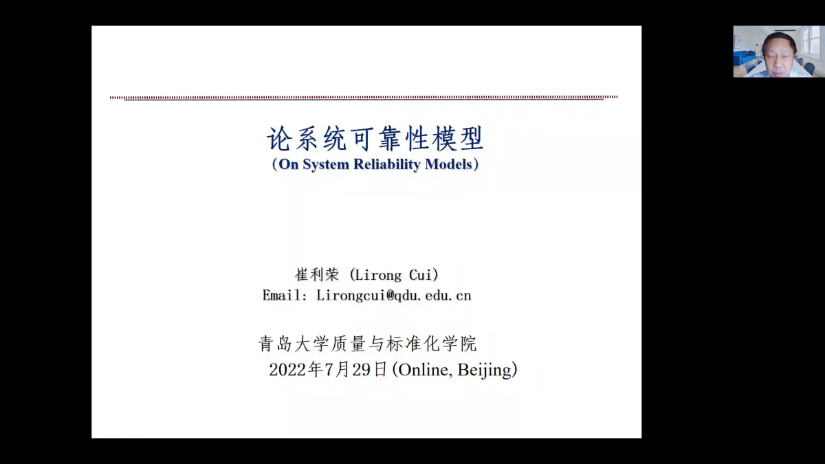 2022年7月29日20:00-22:00,青岛大学特聘教授崔利荣教授应邀作题为“论系统可靠性模型”的线上科普讲座。此次讲座由中国运筹学会可靠性分会理事长、beat365英国官方网站副院长王金亭教授主持,参加讲座的听众来自海内外各高校,包括可靠性分会多位理事、各大高校教授和硕博研究生共220余人。