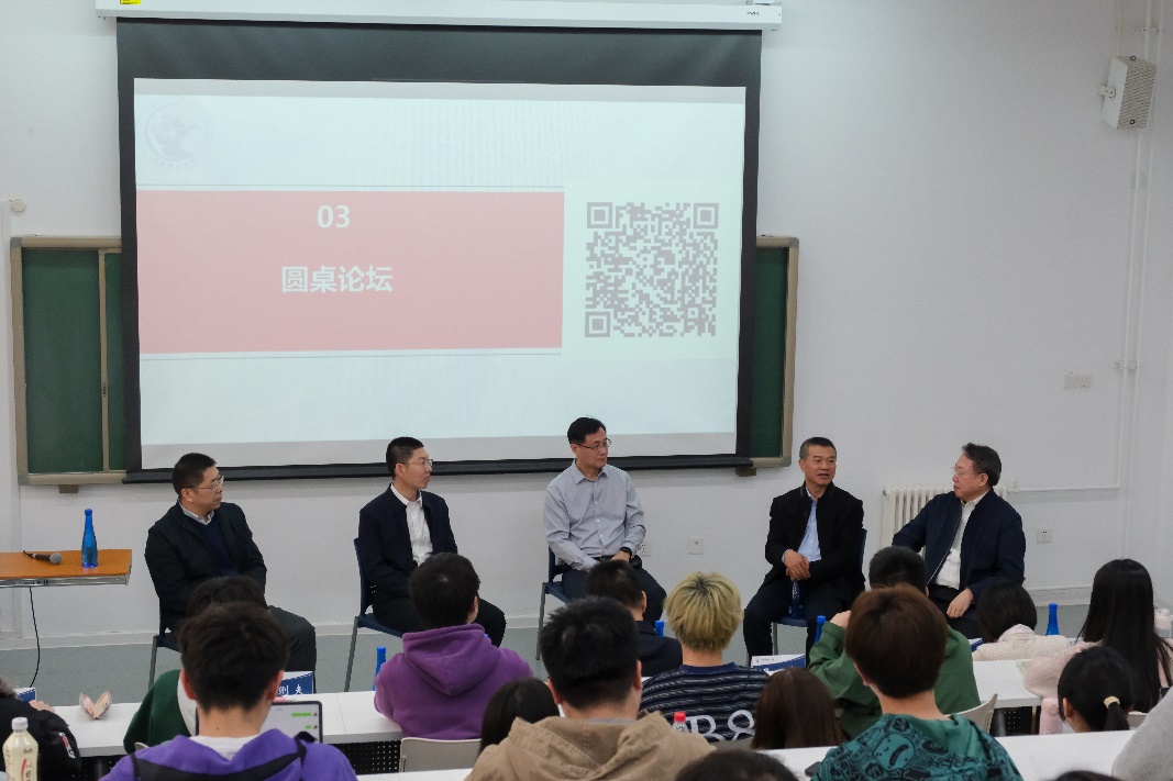 圆桌论坛由林则夫主持,来自业界的四位专家就在场学生们关于学习、就业、个人发展等关切问题进行了详细解答,并结合从业经验对学生们提出切实建议,现场互动交流氛围十分热烈。论坛结束前,刘志东再次向主讲嘉宾和与会人员表达了衷心的感谢。