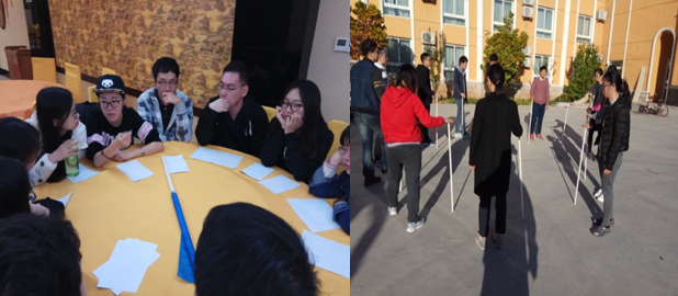 “摸牌游戏”环节,哪个组能在最短时间内将背面朝上的牌按顺序翻转过来即为获胜,三轮比拼下来,大家发现获胜队伍的共同点就是团队成员沟通准确、积极协作以及坚持到底。“极速六十秒”游戏规定由一名同学一分钟内根据图片提示将30张图片按照数字从小到大排序,获胜的“NZND”队用时最短,队长李麒麟激动地说“一开始看似不可完成的任务,没想到通过我们队员的共同努力竟然成功了!”在“逻辑排序”环节中,每组同学们都热情高涨、全心投入,虽然都没有完美完成任务,但是大家在过程中了锻炼了能力,提升了自我。最激动人心的是接下来的体能训练,每组同学们分别进行了绑腿跑、不倒森林、跳大绳三个环节,整齐的口号声回荡在基地上空,最后组与组之间也忘记了竞争,率先完成的两组一起为最后一组同学呐喊助威,成功的那一刻所有人都沸腾了,情不自禁的跳了起来……