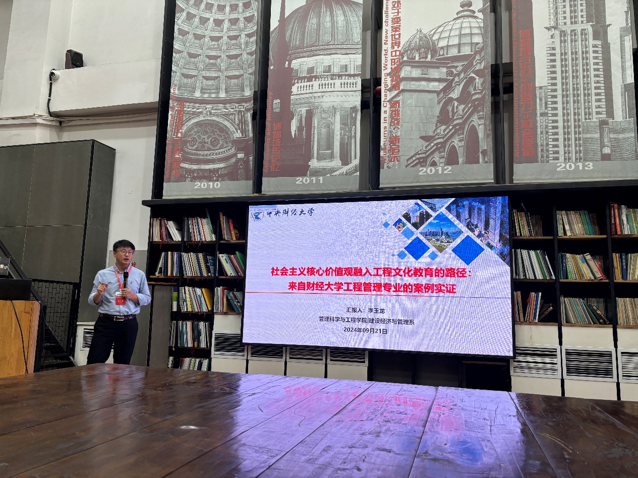 李玉龙教授在“工程管理类专业教学创新论坛”的报告题目为《社会主义核心价值观融入工程文化教育的路径:来自财经大学工程管理专业的案例实证》,围绕社会主义核心价值观融入工程文化教育这一思政议题,辩证分析了融入必要性、提出了融入框架、阐述了融入路径、描绘了实施路线图,并以中财大工程管理专业的案例分享了经验和成效。该报告展示了李玉龙教授主持的beat365英国官方网站教师“思政+”专项基金——社会主义核心价值观融入工程文化教育的路径研究——的核心研究成果。