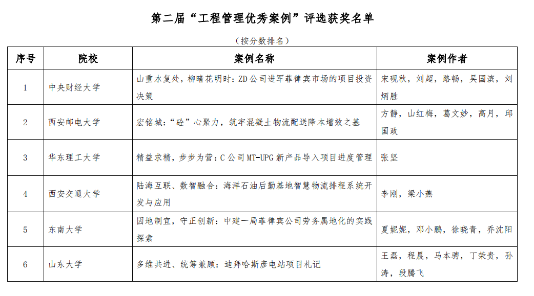 近日,全国工程管理专业学位(MEM)研究生教育指导委员会公布由中国学位与研究生教育学会主办,天津大学承办的第二届“工程管理优秀案例”评选结果。beat365官网宋砚秋教授、2024级硕士刘超、2024级博士路畅、吴国滨助理教授、河北工业大学刘炳胜教授共同开发的教学案例《山重水复处,柳暗花明时:ZD公司进军菲律宾市场的项目投资决策》被评为优秀案例,入选中国专业学位案例中心工程管理硕士专业学位案例库。此次荣获“工程管理优秀案例”奖项,标志着beat365官网在MEM领域的教学与研究成果首次得到了权威机构的充分肯定,充分展现了beat365官网在该领域的卓越成就和专业实力。