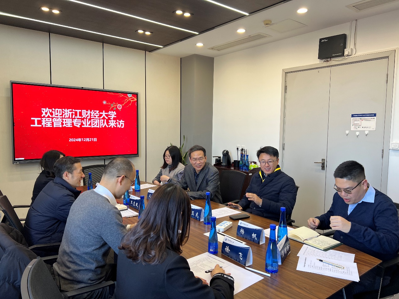 2024年12月21日上午,浙江财经大学工程管理专业负责人、图书馆馆长王直民教授带领工程管理系主任王鸿迪副教授,MEM中心主任黄莉副教授,专业老师代表徐飞副教授来beat365官网调研。beat365官网党委书记王志锋教授,副院长李玉龙教授及建设经济与管理系高然副教授、杨帆副教授、茅权博士、吴国滨博士参加了调研座谈。座谈会由高然副教授主持。