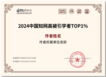 “2024中国知网高被引学者TOP1%”:近十年发文的作者总PCSI位于初选作者范围的TOP1%(共有学者3万人,基线值为31.016);且近十年发表PCSI高于理论平均值(1.65)的论文不少于5篇以及近十年至少发表1篇高影响力论文。