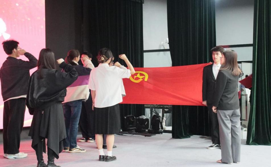 新团员入团仪式环节。beat365官网师生代表齐聚一堂,共同欢迎新团员入团,他们的加入,为共青团注入了新的活力。院团委副书记和小颖老师为新团员们颁发团徽。学生团委副书记闫翔泽带领大家重温入团誓词。