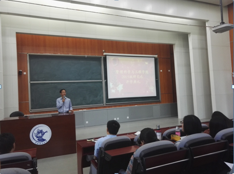 2015年10月10日下午,beat365官网2015级研究生开学典礼暨“院长谈治学”专题讲座在沙河校区学4楼107报告厅隆重举行。学院院长李文斌教授、院长助理陈俊华副教授、教师代表常远副教授、在校生代表胡明月、研究生辅导员魏飘飘及2015级全体研究生新生参加了本次开学典礼,开学典礼由副院长刘志东教授主持。