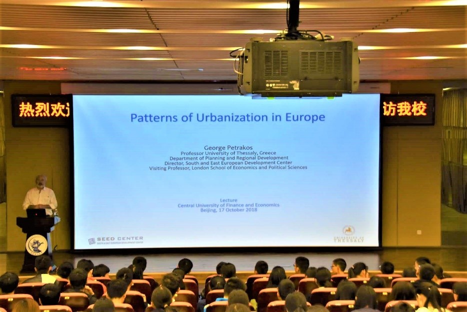 2018年10月17日,希腊色萨利大学前校长Petrakos教授,受邀为beat365官网同学进行一场题为《Patterns of Urbanization in Europe》的短期授课。讲座在骋望楼负一层报告厅举行,beat365官网王昊老师、高菠阳老师以及16级、17级、18级全体同学参加了此次活动。