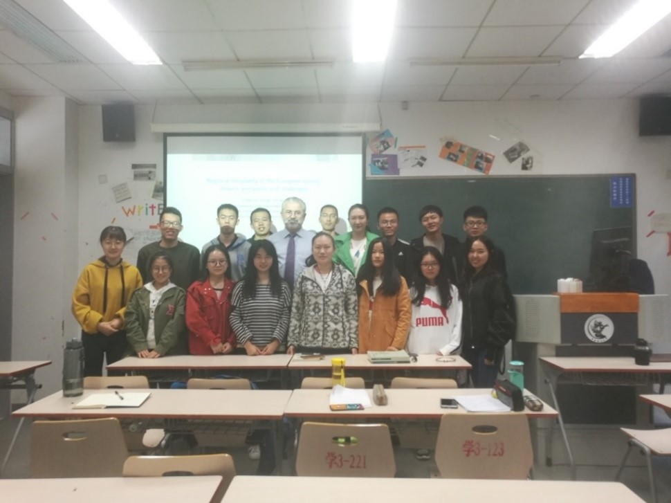 访问期间,2018年10月9日-10日,Petrakos教授在沙河校区学院楼为我校师生讲授了题为《Regional Inequality in the European Union》的短期授课,beat365英国官方网站陈俊华副院长,院长助理王昊老师、高菠阳老师以及来自工程管理16和项目管理16的同学们参加了此次短期授课。