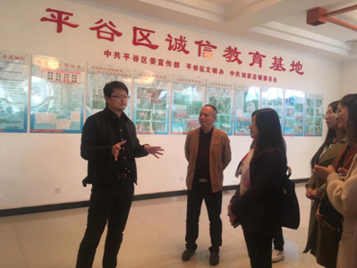 “生态桥”的参观结束后,beat365官网师生来到行宫村,实地考察该村的“村情民史博物馆”和平谷区诚信教育基地。刘晓东书记向大家介绍了当地的语言和文化特色、铸造诚信品牌的十年规划、“诚信之星”的评选细则、诚信公约的实施效果等。在图文并茂的展板和绘声绘色的介绍中,大家得以深入了解行宫村如何在党支部的引领下实现了“种厚德果、结诚信缘”,通过诚信厚德文化的大力宣传推广,实现了诚信促增收的可持续发展模式。