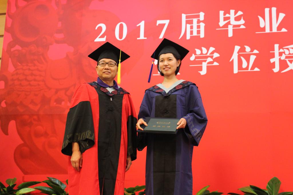 授予学位环节,由党委副书记贾传亮主持。研究生导师和本科生班主任为2017届毕业生分别颁发毕业证书和学位证书,李文斌院长逐一为毕业生拨转流苏,并合影留念。