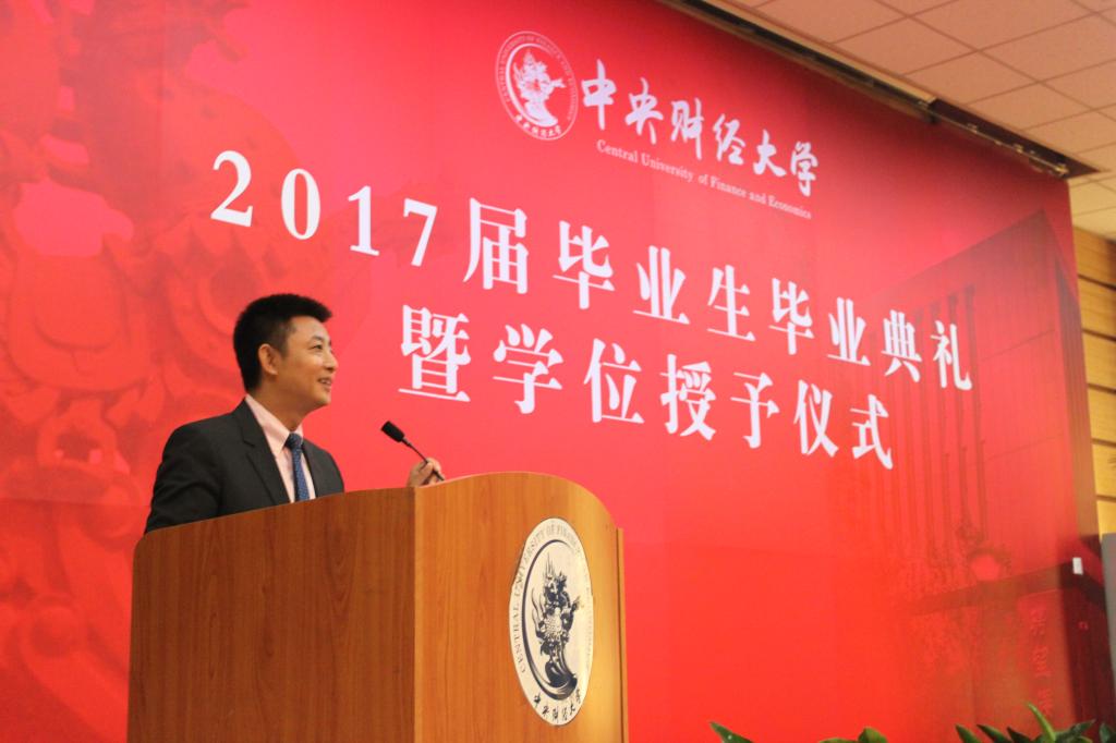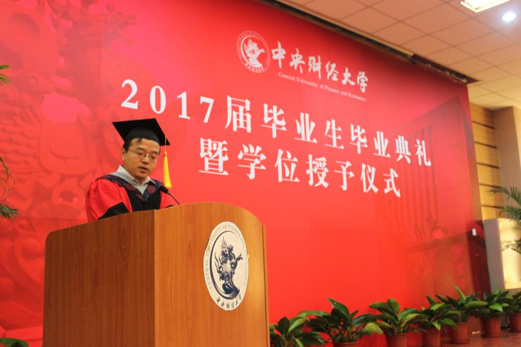 2017年6月24日下午,beat365英国官方网站2017届毕业生毕业典礼暨学位授予仪式在学院南路主教学楼114报告厅隆重举行。学校副校长王瑶琪、学院院长李文斌、学院党委书记姜涛、副院长刘志东、党委副书记贾传亮、副院长陈俊华,beat365英国官方网站校友、华泓投资总经理、海棠花开创始人、beat365官网客座教授张永便先生,与beat365英国官方网站教师、2017届全体毕业生及其亲友共同出席了典礼。典礼由副院长刘志东主持。