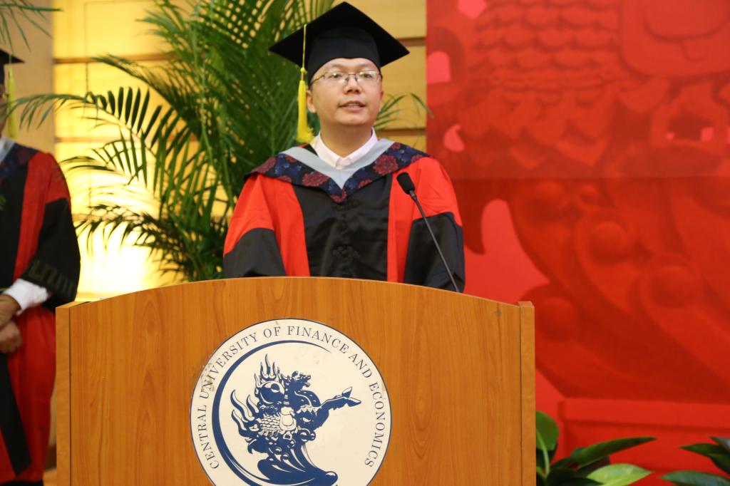 在师生代表发言环节,首先由2013级工程管理班尉方作为毕业生代表发言。她代表学院全体毕业生向辛勤付出并给予无限关怀的老师和家长表示感谢。她深情回忆了大学四年的学习经历和在学院收获的成长与友谊,表示将秉承母校“忠诚团结,求实创新”的校训,做有责任意识并敢挑重担的人,为母校、为学院争光。最后,她向学校、学院、老师和同学们送上了美好祝福。