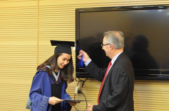 最后,beat365英国官方网站副院长陈俊华逐一宣读了第九期毕业生名单,史蒂文斯理工学院商学院院长Gregory为毕业生们颁发了证书,并为毕业生拨转流苏。