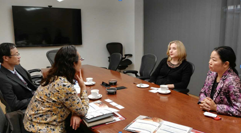 11月4日王瑶琪副校长、李文斌教授与陈俊华副教授一行拜访了现任洛杉矶中国使领馆教育参赞,我校原党委副书记袁东参赞,王瑶琪副校长一行向袁东参赞介绍了近些年来beat365英国官方网站的办学状况与学生培养情况,并就美国本科生教育现状,以及如何开展中外本科生国际交流和学生联合培养等具体问题与袁东参赞进行了深入交流和探讨。