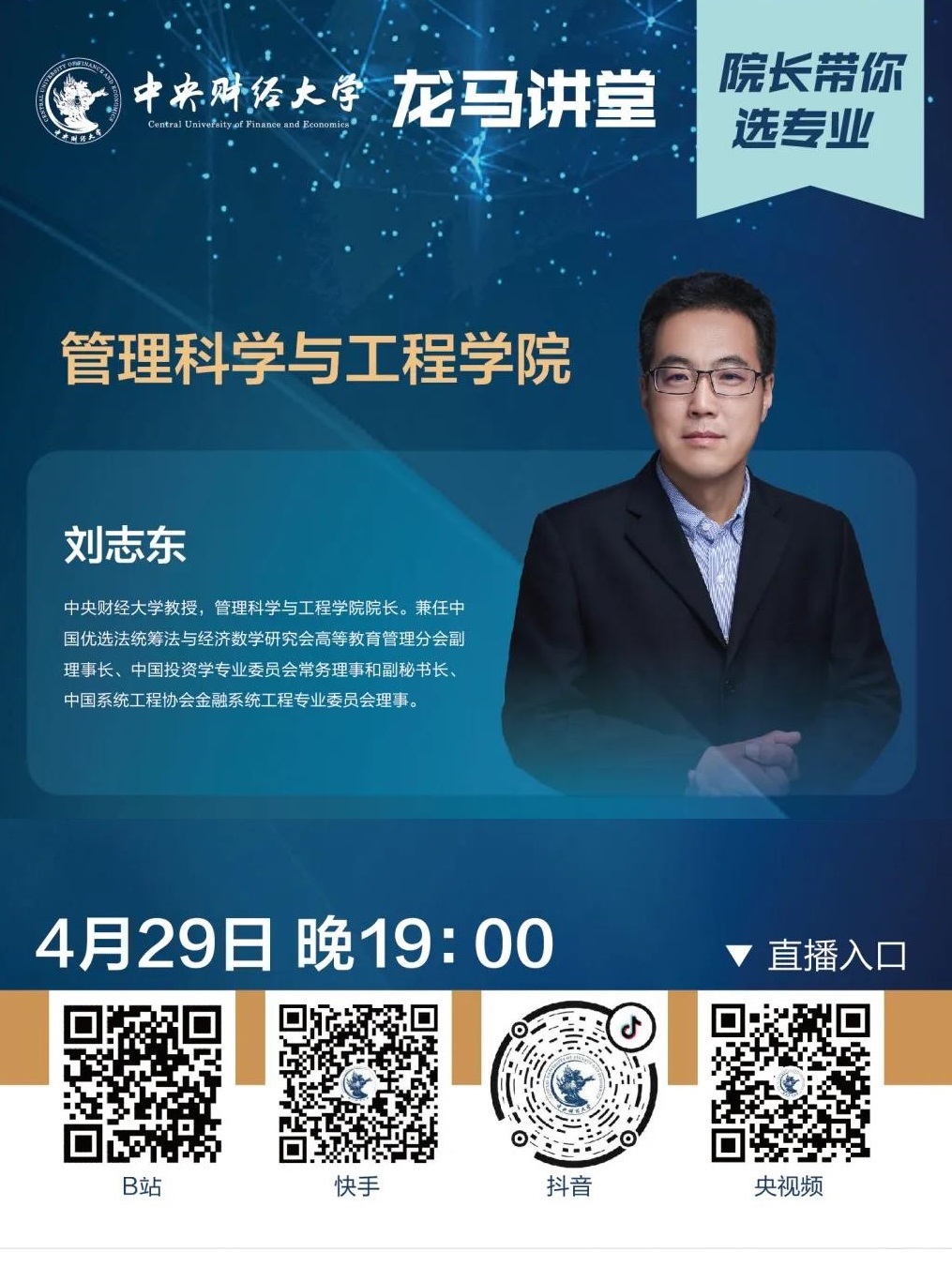 4月29日晚,院长刘志东做客学校本科招生办主办的“龙马讲堂”——“院长带你选专业”栏目,面向全国2020年高考考生和家长作专题讲座,题为“开启大数据与智能时代管理世界大门的金钥匙”。该栏目以在线方式,通过beat365英国官方网站官方B站直播间面向广大考生播出。