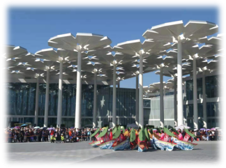 结束了国际馆的游览,支部成员前往中国馆。中国馆被称为“有生命、会呼吸”的建筑,馆顶上是太阳能光伏板,整个场馆犹如一个光伏发电站,光伏板之间有导雨槽,可以综合利用雨水收集和生态滴灌等技术。中国馆展示了利用科技优势创新办会新模式,充分协调区域硬环境与软环境新理念。