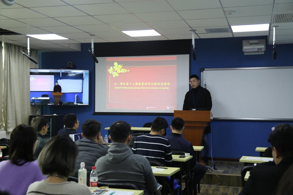 在接下来的新生交流环节,同学们从教育背景、工作经历以及对未来学习的规划进行了逐一介绍。他们有的具有丰富的项目管理工作经验,有的具有丰富的留学经验,还有部分同学刚应届毕业。陈俊华副院长表示,同学们均有较强的学习能力和良好的工作履历,希望通过在本项目的学习,同学们不仅仅能学习到专业知识,而且可以在今后的工作发展中进行深入的交流,互通有无,形成有凝聚力的班集体。