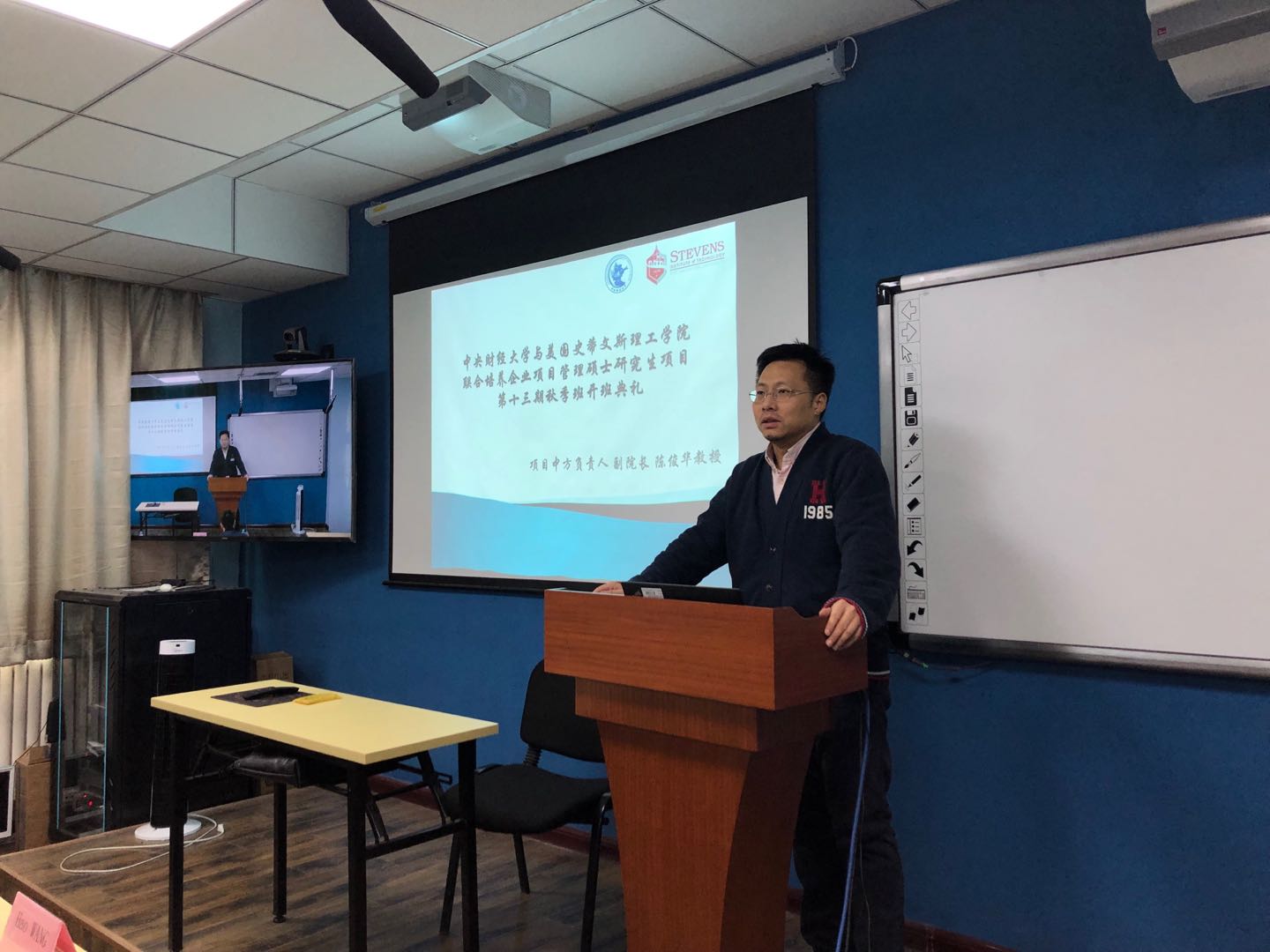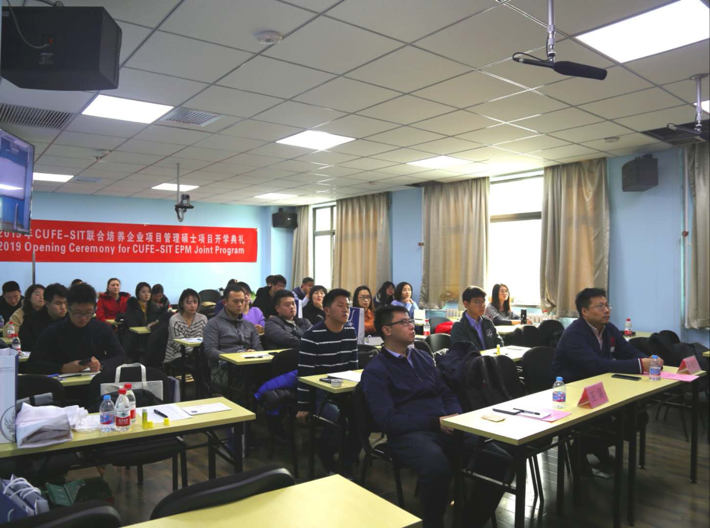 2019年1月12日上午,beat365英国官方网站与美国史蒂文斯理工学院联合培养企业项目管理硕士研究生项目第十三期秋季班开学典礼于beat365英国官方网站南路校区主教309隆重举行。合作项目中方负责人、beat365英国官方网站副院长陈俊华教授,学院教师代表、院长助理王昊副教授,项目管理老师王勤秋老师、冯怡老师,项目老生代表、十三期春季班学员陈秋宇以及新入学的全体十三期秋季班学员共同出席了开班典礼。