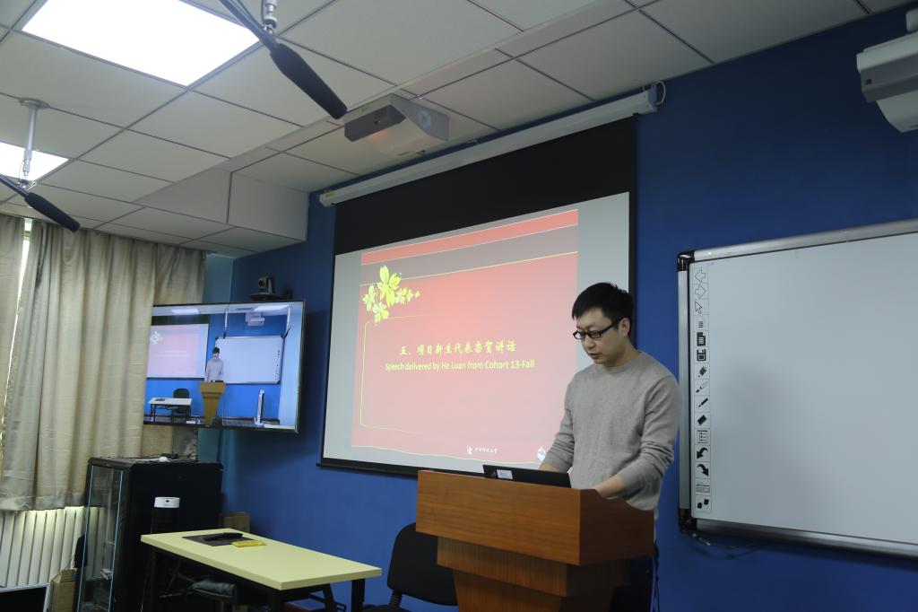 院长助理王昊副教授作为教师代表致辞,他首先祝贺大家的入选项目,并对同学们提出了三点希望和建议:调整状态,明确目标;迎接挑战,勇于开拓;资源共享,协作共赢。在最后,王昊老师希望同学们在学习之余利用好项目搭建的平台和两校的资源,在两年的学习生活中可以收获满满。