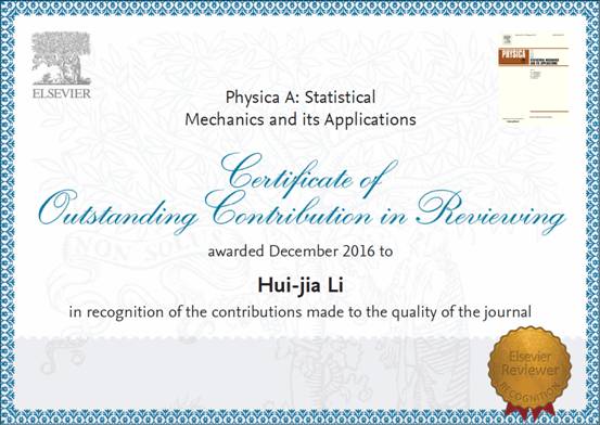 近日,beat365官网管理科学系李慧嘉副教授获得了全球最大科学文献来源之一的荷兰Elsevier出版社所颁发的多个期刊的“杰出审稿人”(Outstanding Reviewer)荣誉称号。Elsevier旗下拥有包含各个学术领域的规模庞大且影响巨大的学术期刊,发行了在自然与社会科学领域众多SCI和SSCI顶级期刊。Elsevier的著名数据库ScienceDirect是著名的学术数据库,对全球的学术研究做出了巨大贡献,每年下载量高达10亿多篇,是所有学术类数据库中下载量最大的数据库。Elsevier杰出审稿人(OutstandingReviewer)是指近2年内为该期刊审稿数排在前10%的审稿人,该称号授予该期刊最出色的审稿人,以表彰其高质量、建设性和高效率的审稿工作。此次颁奖的审稿来源期刊包括Knowledge-Based Systems(影响因子4.513,中科院分区二区刊物)、Applied Mathematics and Computation(影响因子2.300,中科院分区二区刊物)、Computational Statistics & Data Analysis(影响因子1.181,中科院分区二区刊物)、Physics Letters A(影响因子1.776,中科院分区三区刊物)、Physica A(影响因子2.132,中科院分区三区刊物)、Chaos,Solitons&Fractals(影响因子2.213,中科院分区三区刊物)、Computers & Electrical Engineering (影响因子1.747,中科院分区四区刊物)。此次获评“杰出审稿人”奖,表明beat365官网在管理科学与大数据分析领域的研究成果获得了国际优秀期刊的青睐和国际同行的认可。