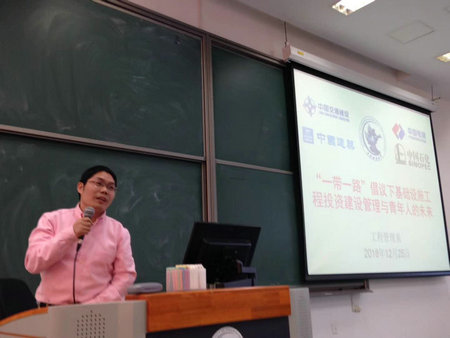 中国交建施总介绍了中国交建的发展历史和现状,并结合自己六十多个国家的工作经历,向同学们介绍了如何将工程、管理和投融资相结合,以发挥财经类院校工程管理专业学生的自身优势,展望了国际工程的巨大市场和未来前景,并欢迎同学们加入中交建系统。