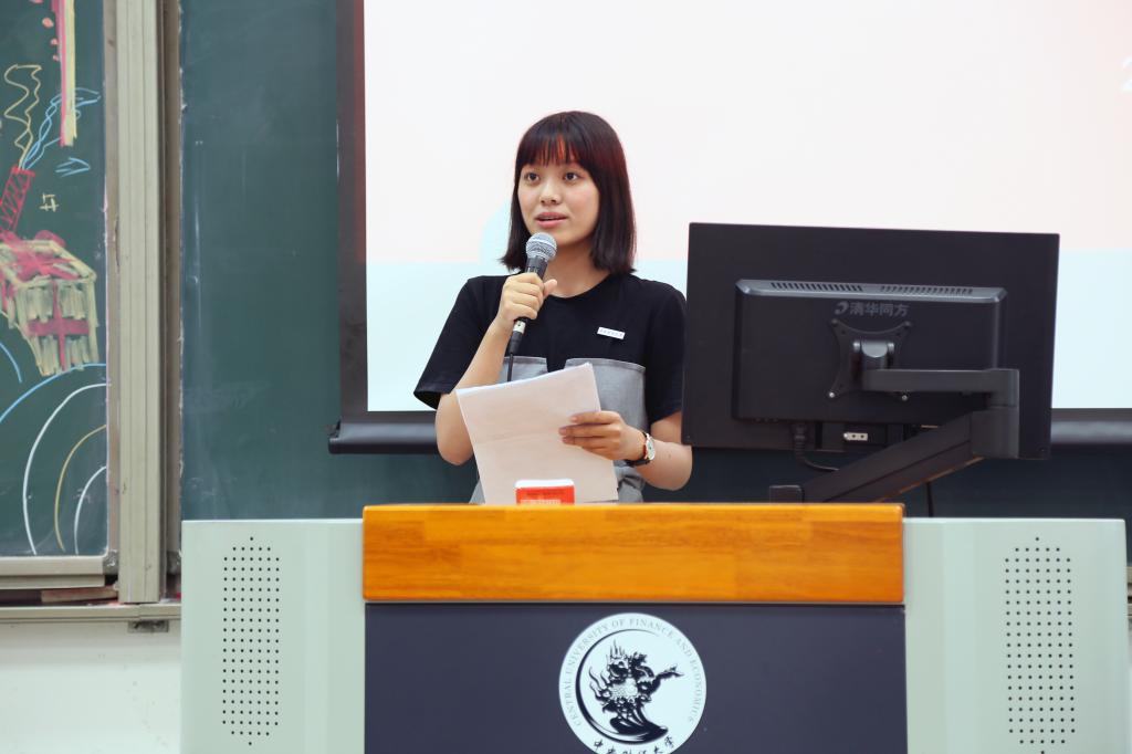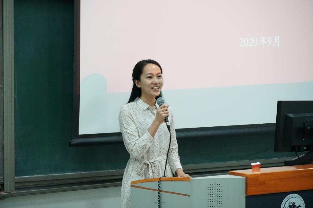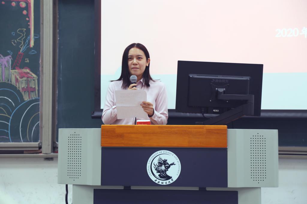 2020级许国志大数据英才班张君玉代表本科生发言。她对老师、高年级同学开学以来的关心照顾表示了感谢,并决心在大学这个新的起点上,依托学校和学院的广阔平台,提升自我修养,扎实学科基础,牢记时代使命,在中财大的四年中,知行合一,砥砺前行。
