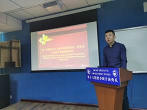 学院教师代表、投资系主任荆中博副教授也受邀在开班典礼中致辞。他首先祝贺大家入选项目,并指出项目的课程均按照美方标准设置,希望同学们做好吃苦的准备,希望大家能够养成良好的学习习惯。荆中博老师希望同学们在学习过程中成为肯学习、会学习、善表达的人,希望大家通过项目的学习能够培养国际视野,并预祝同学们学业有成。
